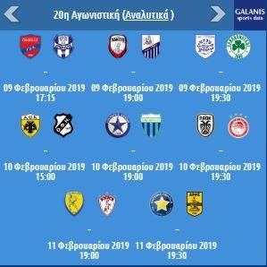 Ενώ το ΠΑΟΚ-Ολυμπιακός θα διεξαχθεί την Κυριακή 10 Φεβρουαρίου στις 19:30.