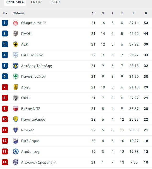 Δείτε πως διαμορφώθηκαν τα δεδομένα στη βαθμολογία της Super League μετά τα πρώτα ματς της 23ης αγωνιστικής