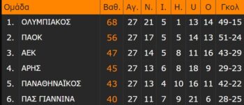 Mαθηματικά δεν έχει εξασφαλίσει τίποτα, κανείς, αλλά πρέπει να συμβούν πολλά, για να χάσει ο Ολυμπιακός το πρωτάθλημα και ο ΠΑΟΚ τη δεύτερη θέση.