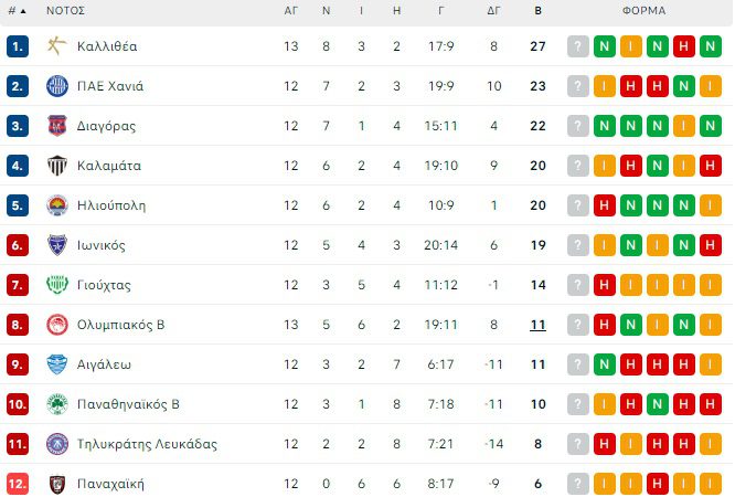 Τα αποτελέσματα της 13ης αγωνιστικής