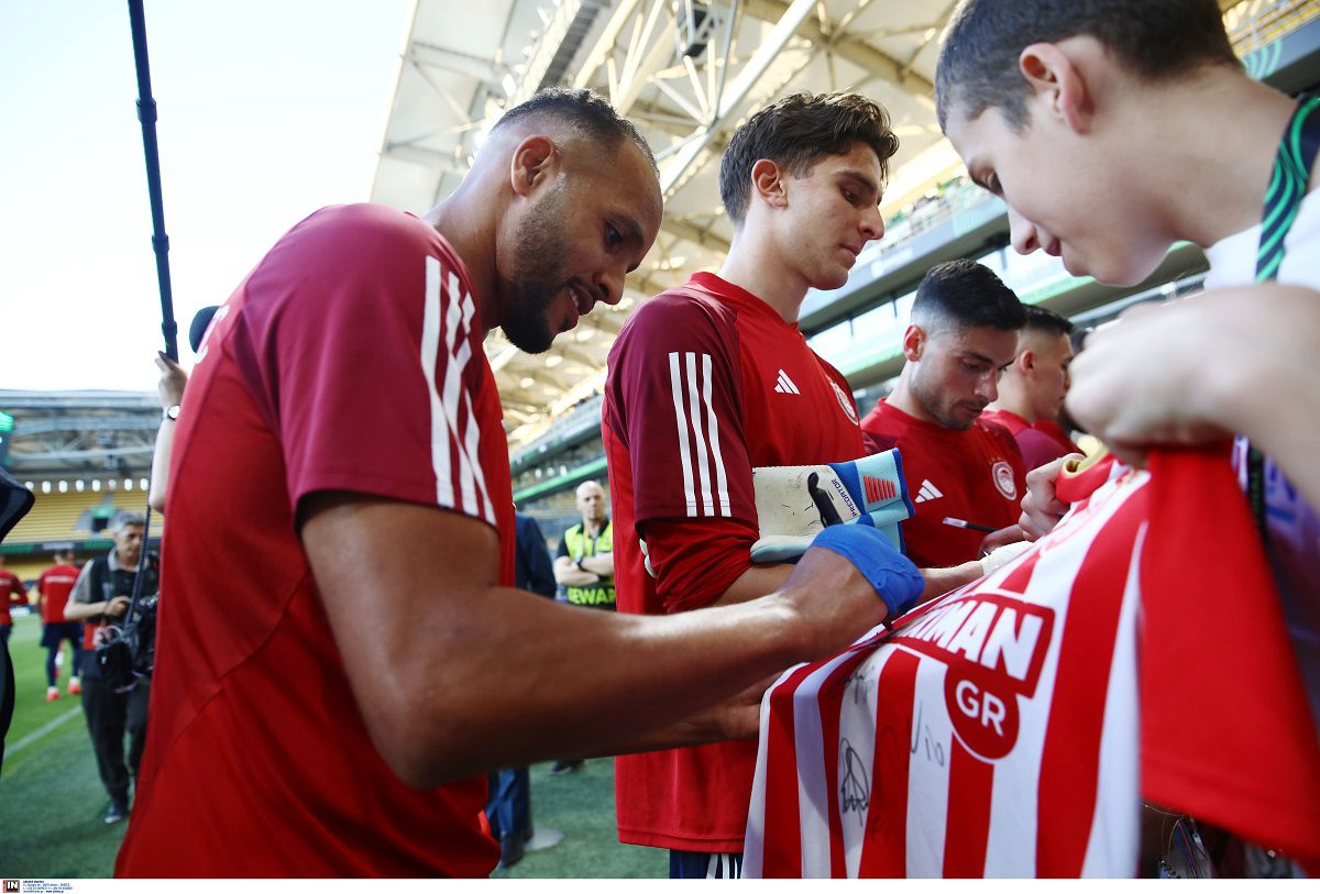 Μετά το τέλος του προγράμματος οι Πειραιώτες υπέγραψαν αυτόγραφα σε μικρούς οπαδούς τους.