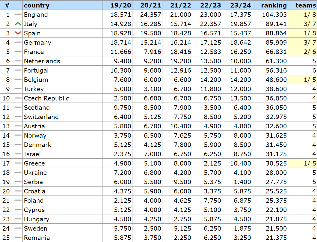 Με αυτή τη νίκη οι «ερυθρόλευκοι» έδωσαν άλλους 400 βαθμούς στη χώρα μας. Η απόσταση που μας χωρίζει από τη Δανία είναι 925 βαθμοί. Πώς κλείνει η ψαλίδα; Νίκη στη ρεβάνς με την Άστον Βίλα και κατάκτηση του τροπαίου ακόμη και με ισοπαλία στον τελικό.