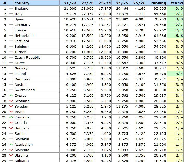 Την ίδια στιγμή, οι εξελίξεις σε άλλες χώρες αποδείχθηκαν ευνοϊκές: η Νορβηγία έμεινε με μία ομάδα λιγότερη μετά τον αποκλεισμό της Φρέντρικστατ, αλλά και της Ρόζενμποργκ. Μικρότερη απειλή πια οι Νορβηγοί από την 13η θέση.