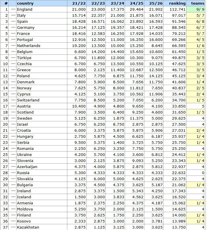 Η 10η θέση στην κατάταξη της UEFA έχει ιδιαίτερη σημασία για τη σεζόν που έρχεται. Αν η Ελλάδα καταφέρει να την κατακτήσει, τότε ο πρωταθλητής της επόμενης χρονιάς θα προκριθεί απευθείας στη League Phase του Champions League, ενώ ο δεύτερος θα ξεκινήσει από τον 2ο προκριματικό γύρο μέσω του μονοπατιού των μη πρωταθλητών.