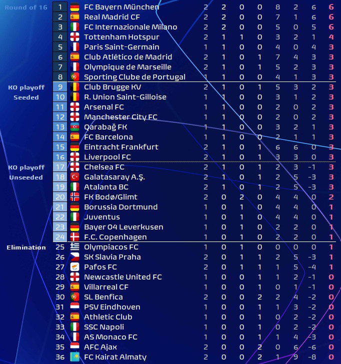 Ο Ολυμπιακός έχει δυσκολέψει πολύ τη ζωή του στο Champions League μετά την ισοπαλία με την Πάφο και το γνωρίζει καλά. Με τις μισές ομάδες να έχουν δύο παιχνίδια και τις άλλες μισές ένα, στη βαθμολογία είναι εκτός 24άδας.