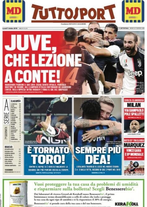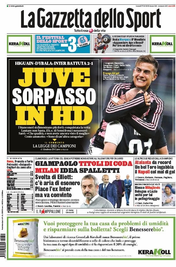 Στην Ιταλία τώρα, είχαμε το μεγάλο ντέρμπι ανάμεσα στην Ίντερ και τη Γιουβέντους, εκεί που η «Γηραιά Κυρία», παρά την άνοδο της ομάδας του Μιλάνου, έδειξε ότι ακόμα είναι το… αφεντικό.