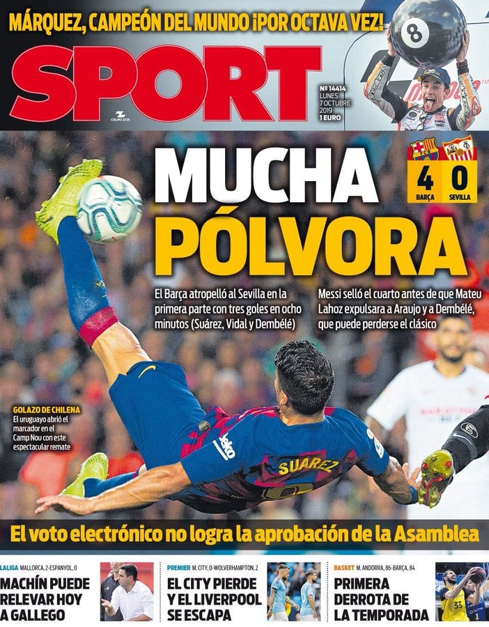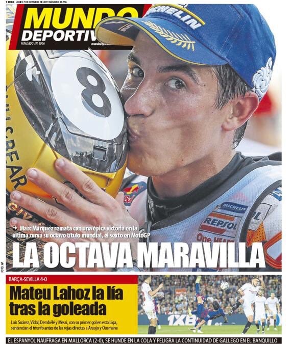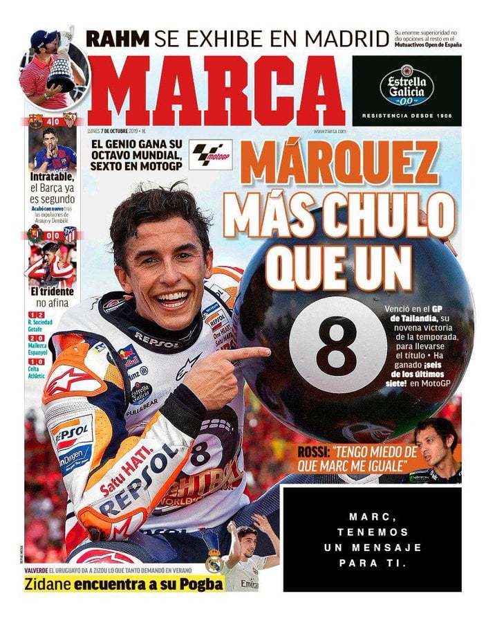 Φυσικά στην Ισπανία, αυτό που μονοπωλεί τον ενδιαφέρον, είναι η κατάκτηση του πρωταθλήματος MotoGP από τον Μαρκ Μαρκές: