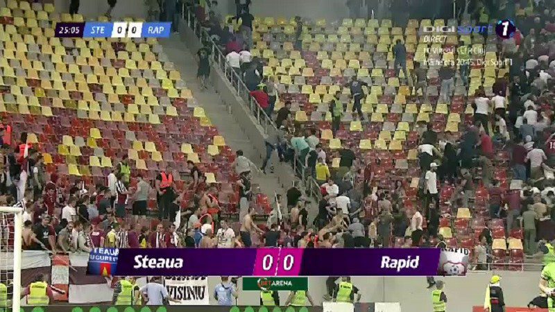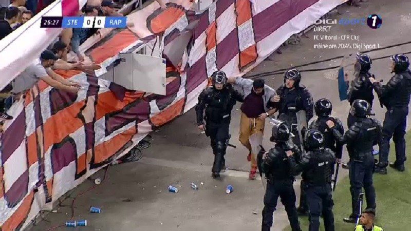 Σοβαρά επεισόδια ξέσπασαν στο σαββατιάτικο (14/4) ντέρμπι του Βουκουρεστίου μεταξύ της Στεάουα και της Ραπίντ.