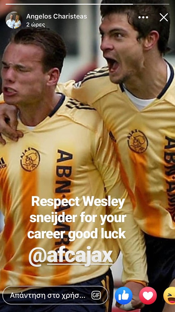 Τις ημέρες που ήταν μαζί με τον Γουέσλι Σνάιντερ στον Άγιαξ θυμήθηκε ο Άγγελος Χαριστέας, που έκανε ένα ποστάρισμα στο προσωπικό του instagram.