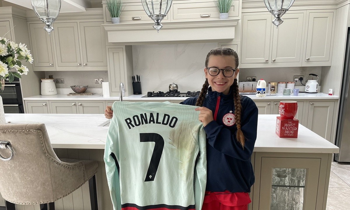 🇮🇪 Addison Whelan from Eastwall met @Cristiano last night and came away with his jersey! @StrawberryFM104 popped around after the show to chat to her! @CrossyTweets #Ronaldo #COYBIG @FAIreland pic.twitter.com/2Z2Q00Hove