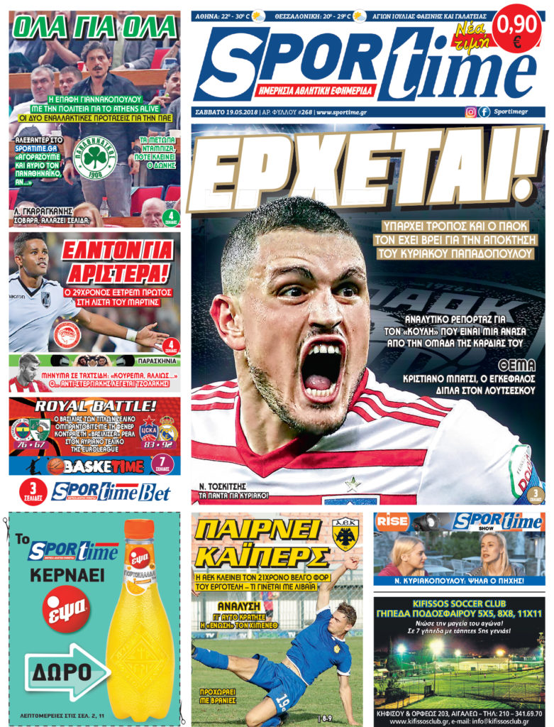 Πρωτοσέλιδο Sportime: Πρωτοσέλιδο Sportime (2/12): Τα όμορφα λόγια του Νίκου Οικονομόπουλου