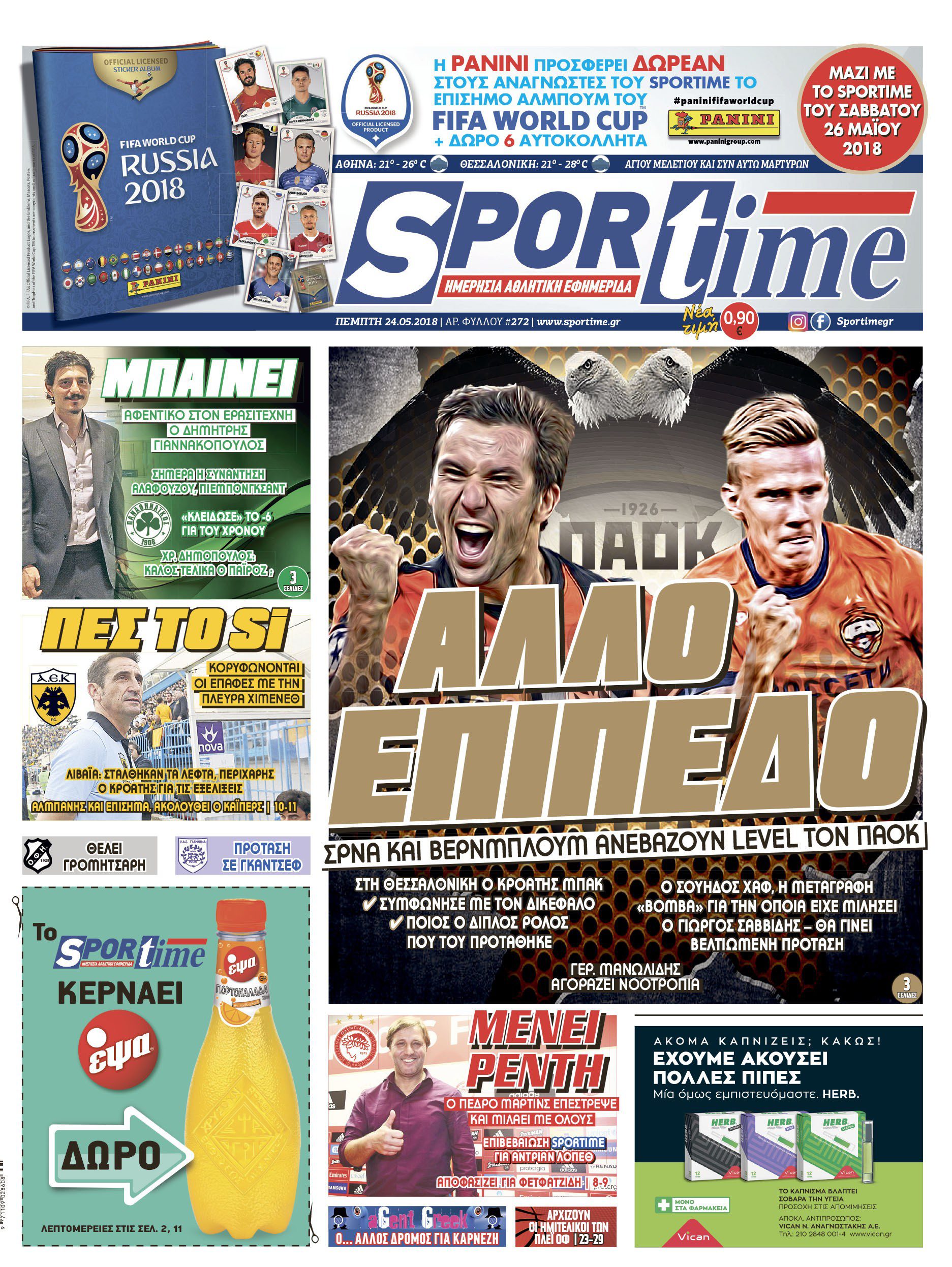 Πρωτοσέλιδο Sportime (18/9): Η Εθνική πόλο έκανε περίπατο με την Τουρκία