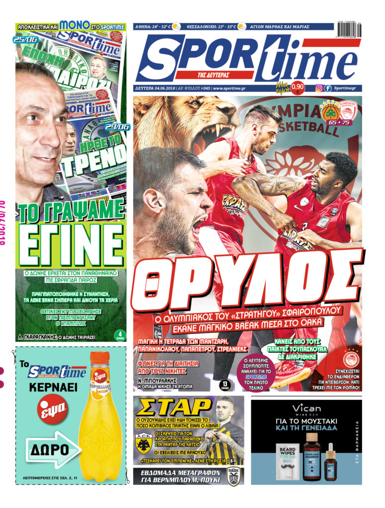 Πρωτοσέλιδο Sportime: Πρωτοσέλιδο Sportime (2/12): Τα όμορφα λόγια του Νίκου Οικονομόπουλου