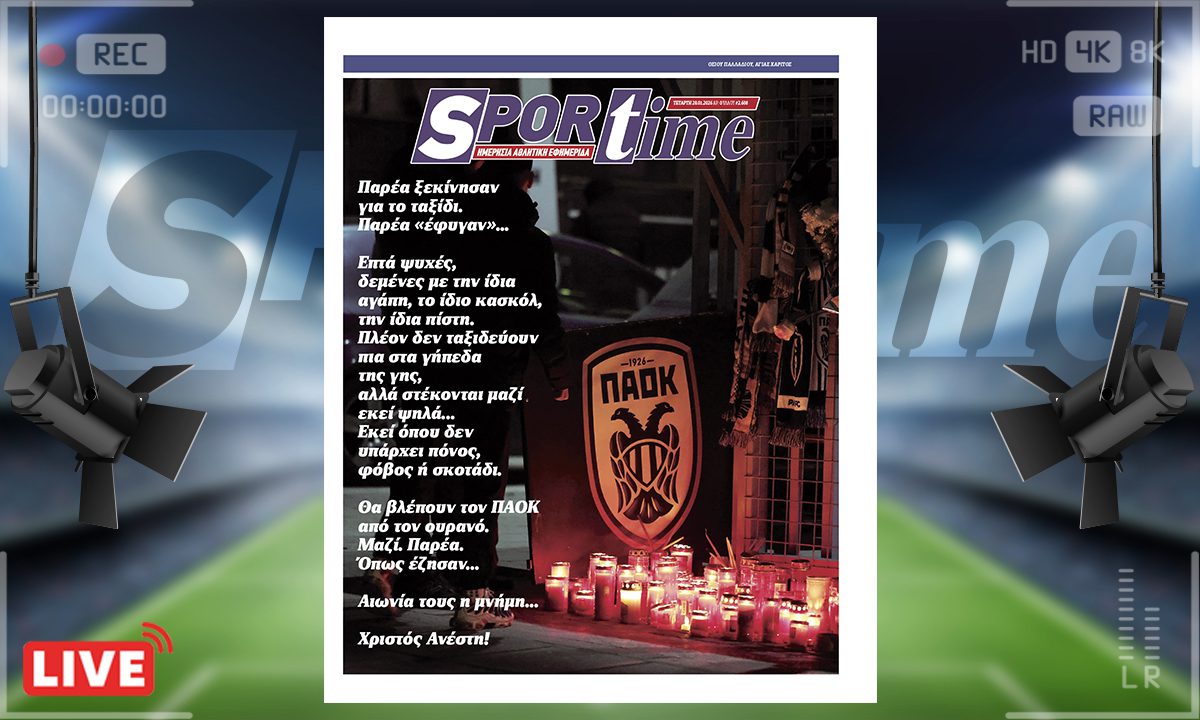 Πρωτοσέλιδο Sportime (28/1) : Κανείς δεν θα ξεχάσει τους οπαδούς του ΠΑΟΚ – Χριστός Ανέστη!