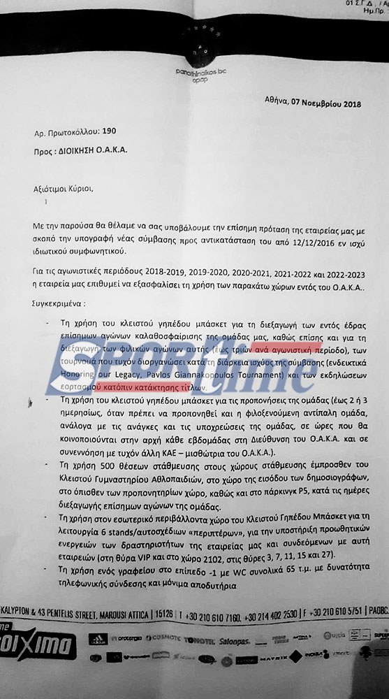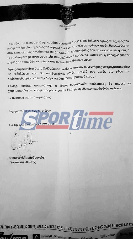 Στην τρισέλιδη επιστολή της ΚΑΕ προς την διοίκηση του ΟΑΚΑ που δημοσιεύει σήμερα το Sportime, στην δεύτερη σελίδα, αναφέρεται ξεκάθαρα: