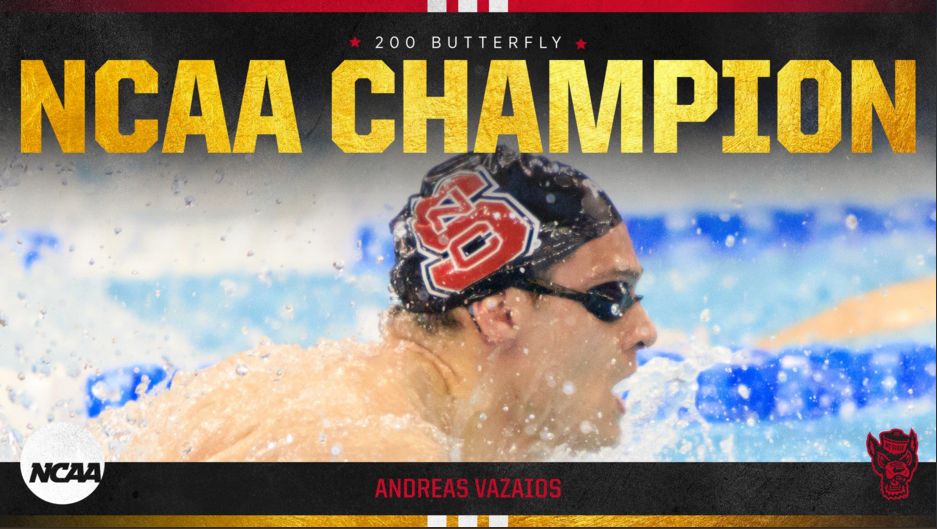 The 2018 200 butterfly NCAA Champion Andreas Vazaios! #STATEment 🐺♦️🥇 pic.twitter.com/mlggqQXklR