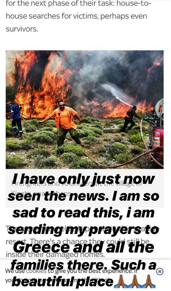 Ο Βρετανός παγκόσμιος πρωταθλητής της Formula 1, είδε όσα έχουν συμβεί στην Ελλάδα και συγκεκριμένα στην Αττική με τις φονικές πυρκαγιές κι εξέφρασε τη λύπη του μέσω του Instagram.