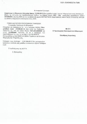 Συνεχίζουμε με την επιλεκτική ευαισθησία του Λευτέρη Αυγενάκη σε σωματεία της Κρήτης. Επιχορήγηση 2.500 ευρώ στο Σύλλογο Μαραθωνοδρόμου Κρήτης για τη διοργάνωση αγώνα τρεξίματος που είχε συνδρομή!