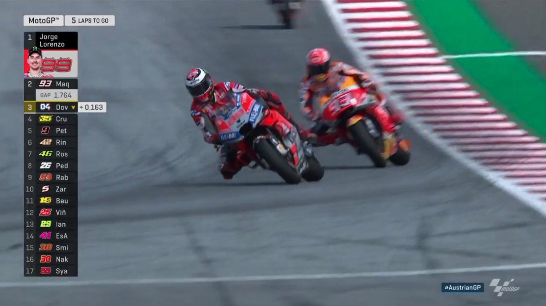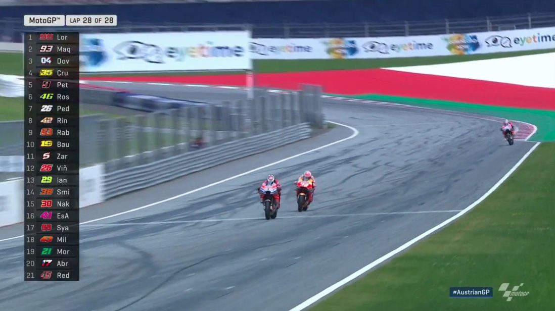 We think he's happy with that one 😉@lorenzo99 takes the fight to @marcmarquez93 and comes out on top! 🥊#AustrianGP 🇦🇹 pic.twitter.com/wv60Z3bmDK