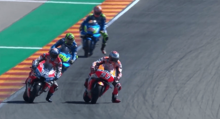 Χρειάστηκε μόνο μία προσπέραση, τέσσερις γύρους πριν πέσει η καρώ σημαία του τερματισμού, προκειμένου ο Μαρκ Μάρκεθ να αναρριχηθεί στην κορυφή του Γκραν Πρι της Αραγονίας, κόντρα στον κύριο αντίπαλό του Αντρέα Ντοβιτσιόζο.