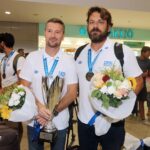 Τα παιδιά της εθνικής έζησαν στιγμές αποθέωσης, αλλά και συγκίνησης, ενώ μεταξύ αυτών που ήταν στο αεροδρόμιο μαζί τους, ήταν και ο προπονητής της εθνικής γυναικών, Γιώργος Μορφέσης.