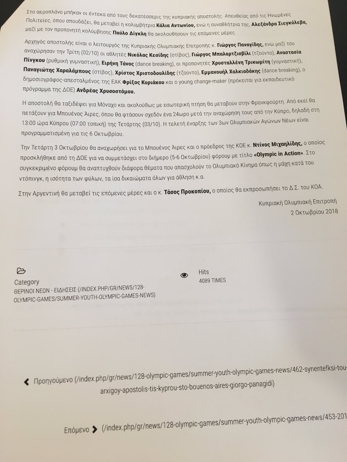 Επίσης, φαίνεται πως ο γιος του τωρινού προέδρου της ΚΟΕ, Ανδρέας πήρε μέρος και σε εκπαιδευτικό πρόγραμμα με ταξίδι στο Μπουένος Άϊρες, που θα έπρεπε κανονικά ένας παράγοντας που κατέχει θέσεις, να αποφεύγει να έχει προνομιακές μεταχειρίσεις υπέρ ανθρώπων του περιβάλλοντός του, πόσο μάλλον της οικογένειάς του.
