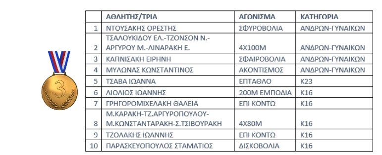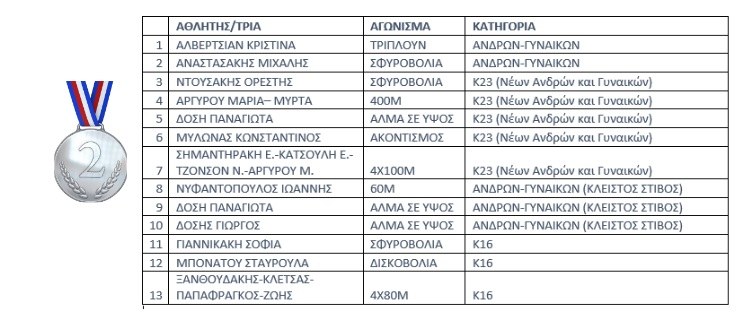 * 1η θέση στην ετήσια αξιολόγηση Σωματείων στίβου από τον ΣΕΓΑΣ