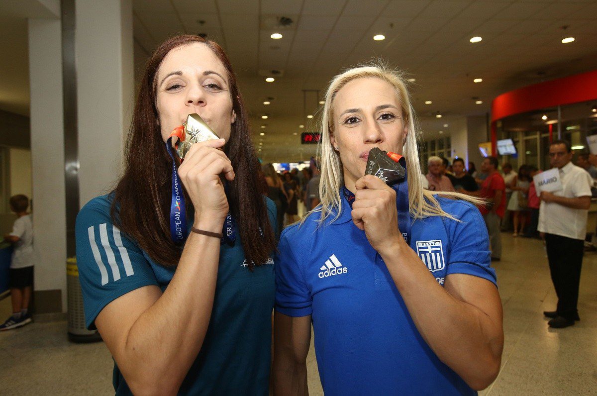 Το αχτύπητο δίδυμο της Ελλάδας στο επί κοντώ, η Κατερίνα Στεφανίδη και η Νικόλ Κυριακοπούλου έφτασαν στο «Ελ. Βενιζέλος» το βράδυ του Σαββάτου μετά το θρίαμβό τους στο Ευρωπαϊκό Πρωτάθλημα του Βερολίνου.