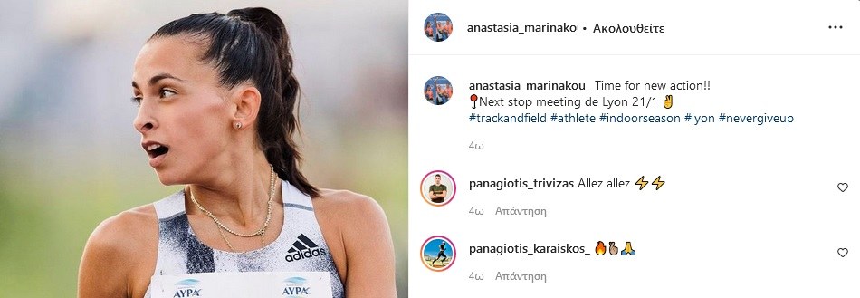 Οι πρώτοι που αναμένεται να αγωνιστούν φέτος σε διεθνή μίτινγκ είναι ο Παναγιώτης Τριβυζάς και η Αναστασία Μαρινάκου στις 21 Ιανουαρίου στη Λιόν.