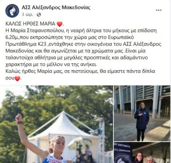 Στίβος: Ο ΑΣΣ Αλ. Μακεδονίας καλωσόρισε επίσημα την Μαρία Στεφανοπούλου