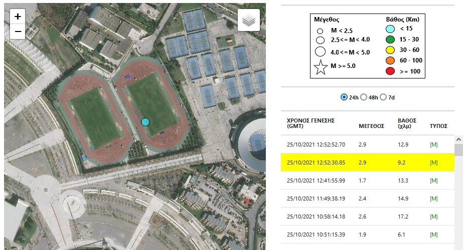 Στο Ολυμπιακό Στάδιο και συγκεκριμένα στο Κ2 είναι το επίκεντρο του σεισμού 2,9 της κλίμακας Ρίχτερ σύμφωνα με το Γεωδυναμικό Ινστιτούτο.