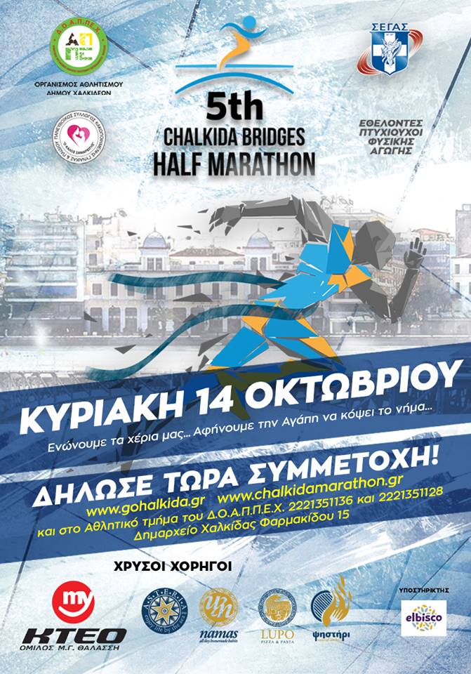 Στην πόλη της Χαλκίδας θα γίνει την Κυριακή (14/10) ο αγώνας δρόμου με φιλανθρωπικό χαρακτήρα, «CHALKIDA BRIDGES Half MARATHOΝ».
