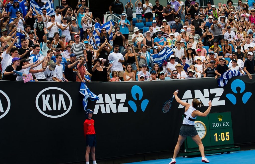 Ο κόσμος δημιούργησε, όπως και στην περίπτωση του Στέφανου Τσιτσιπά, τρομερή ατμόσφαιρα –έπαιξαν και οι δύο στο ίδιο κορτ- και βοήθησε τα μέγιστα στη νίκη της Ελληνίδας τενίστριας.
