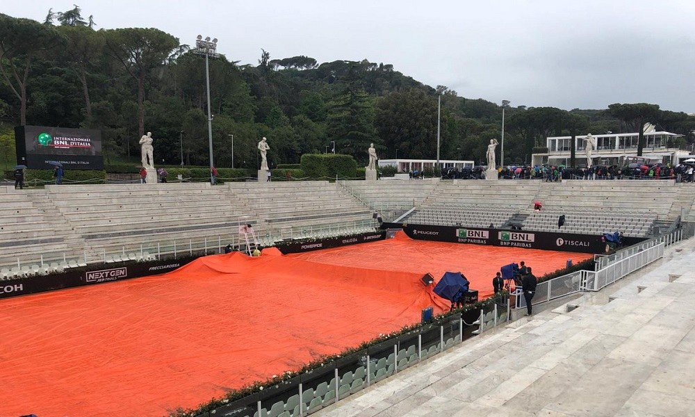 Από το πρωί βρέχει στην ιταλική πρωτεύουσα και ήδη το πρόγραμμα έχει πάει πίσω κατά 90 λεπτά. Οι διοργανωτές του τουρνουά ανακοίνωσαν ότι – καιρού επιτρέποντος – τα σημερινά ματς στο όπεν Ρώμης, θα αρχίσουν στις 13:30. Όμως η πρόγνωση λέει ότι η βροχή θα κρατήσει για αρκετές ώρες.