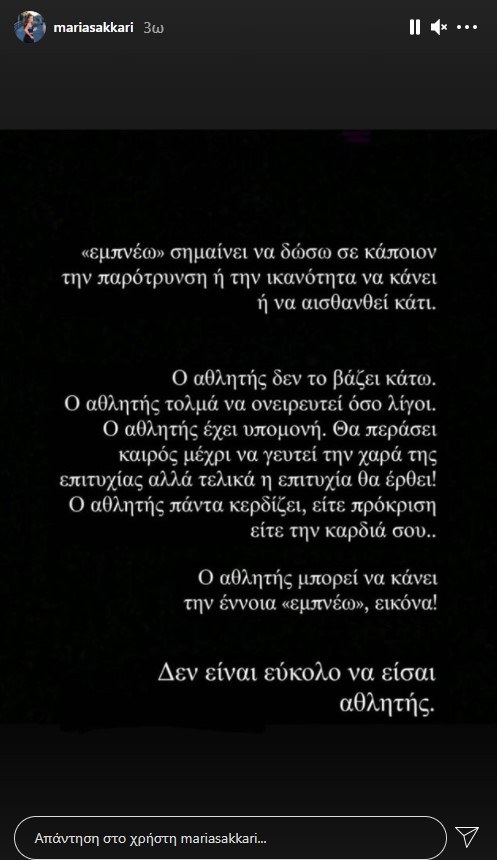 Η Μαρία Σάκκαρη έστειλε... μήνυμα γεμάτο νόημα θέλοντας να αναφέρει όλα όσα χρειάζεται να κάνει ένας αθλητής.