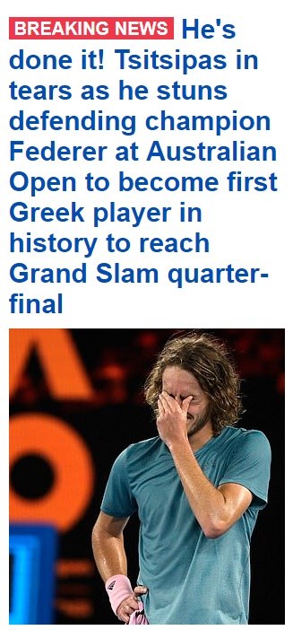 Daily Mail: «Τα κατάφερε! Ο Στέφανος Τσιτσιπάς άφησε άφωνο τον Φέντερερ και έγινε ο πρώτος Έλληνας που φτάνει στα προημιτελικά ενός Γκραν Σλαμ!»