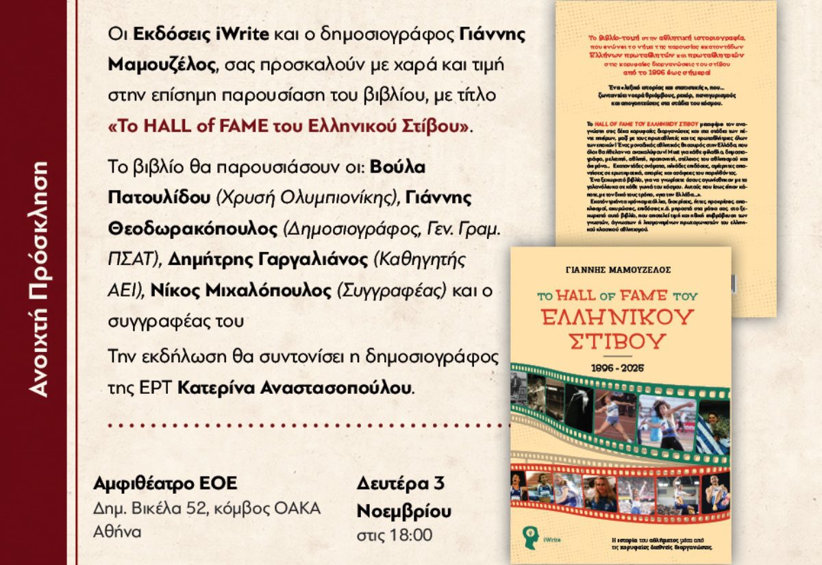 Ένα βιβλίο από τον Γιάννη Μαμουζέλο –τομή στην αθλητική ιστοριογραφία, που ενώνει το νήμα της παρουσίας εκατοντάδων πρωταθλητών & πρωταθλητριών μας στις 10 κορυφαίες διοργανώσεις από το 1896 έως σήμερα!