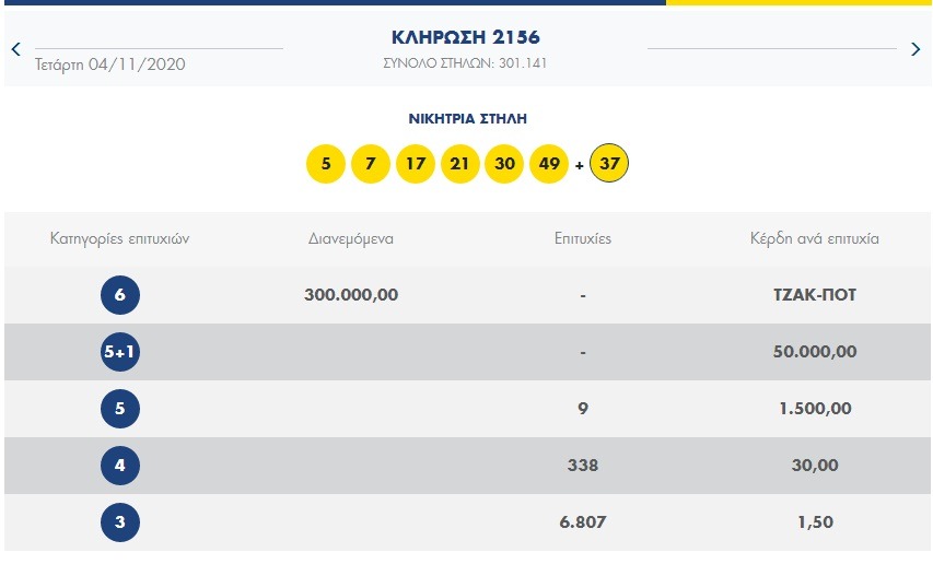 ΛΟΤΤΟ 4/11: Δείτε παρακάτω την τελευταία κλήρωση