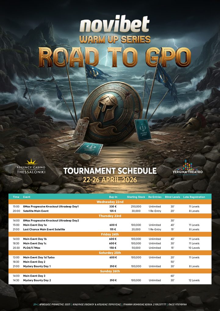 Το πλήρες πρόγραμμα του Novibet Warm Up Series – Road to GPO δόθηκε στη δημοσιότητα και φέρνει μια σειρά από τουρνουά που λειτουργούν ως ιδανική προθέρμανση ενόψει του Greek Poker Odyssea (GPO).