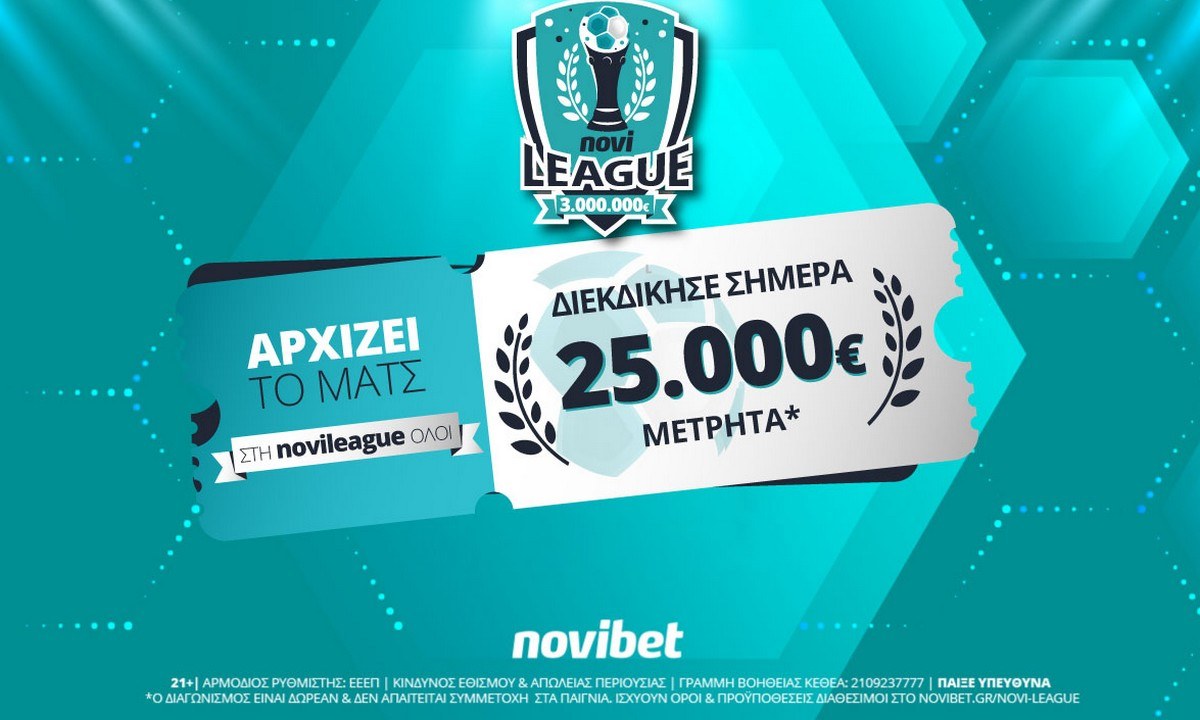 *Ο ΔΙΑΓΩΝΙΣΜΟΣ ΕΙΝΑΙ ΔΩΡΕΑΝ & ΔΕΝ ΑΠΑΙΤΕΙΤΑΙ ΣΥΜΜΕΤΟΧΗ ΣΤΑ ΠΑΙΓΝΙΑ. ΙΣΧΥΟΥΝ ΟΡΟΙ & ΠΡΟΫΠΟΘΕΣΕΙΣ ΔΙΑΘΕΣΙΜΟΙ ΣΤΟ NOVIBET.GR/NOVI-LEAGUE