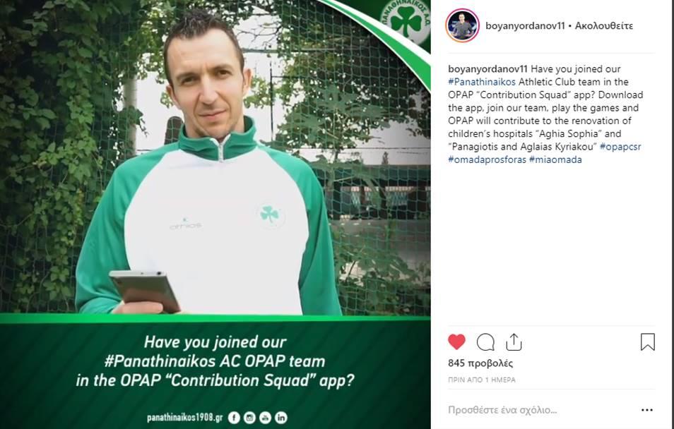 Τη δική του ομάδα στην διαδραστική εφαρμογή του ΟΠΑΠ έχει δημιουργήσει και ο Παναθηναϊκός Αθλητικός Όμιλος. Παναγιώτης Πελεκούδας και Μπόμπι Ιορντάνοφ, από το τμήμα Volley του συλλόγου, ανέλαβαν δράση και με αναρτήσεις τους στα social media καλούν τους φίλους τους Παναθηναϊκού να μπουν στην «Ομάδα Προσφοράς ΟΠΑΠ» και να γίνουν μέλη του #Panathinaikos Athletic Club.