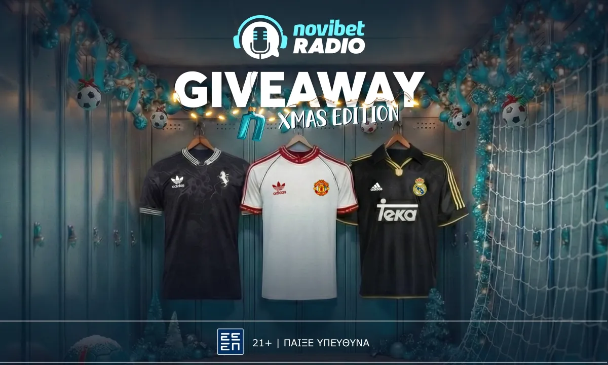 Από 15-22 Δεκεμβρίου, το απόλυτο X-MAS Giveaway είναι γεγονός! Το Novibet Radio σου δίνει τη δυνατότητα να κερδίσεις μία από τρεις εμβληματικές ποδοσφαιρικές εμφανίσεις.