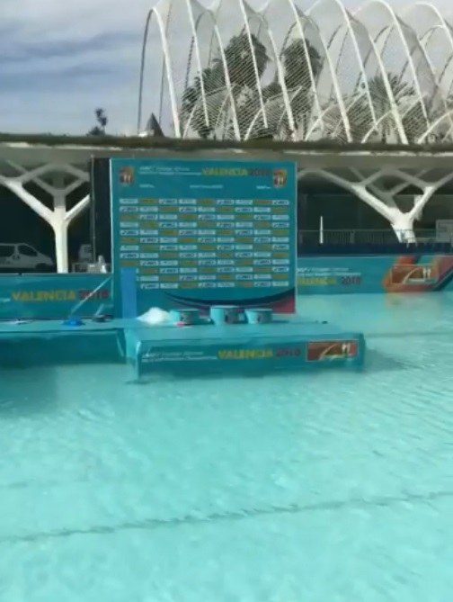 Αποφάσισαν να κάνουν την απονομή των μεταλλίων, μέσα στη τεχνητή λίμνη που βρίσκεται στο κέντρο της πόλης, μπροστά από τη «Πόλη Τέχνης και επιστημών».