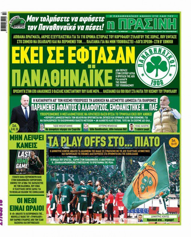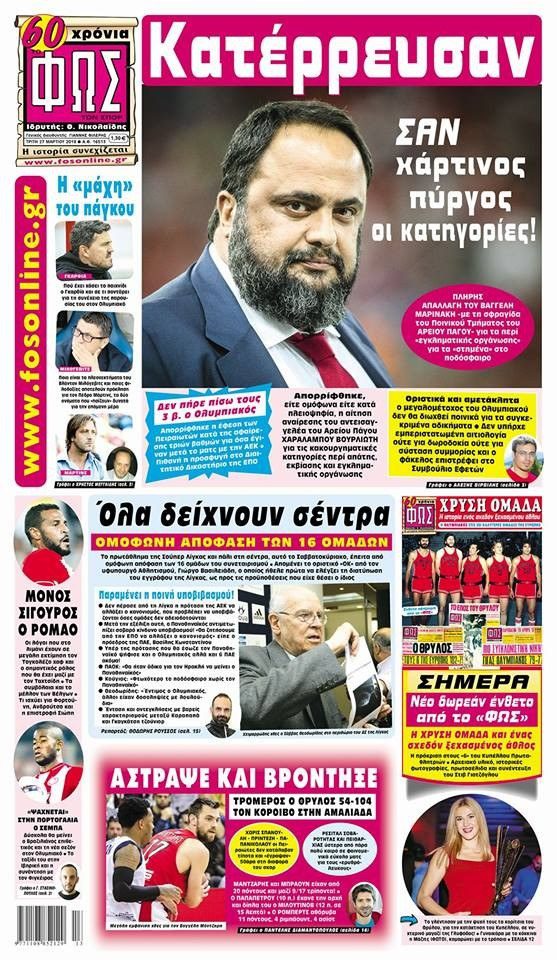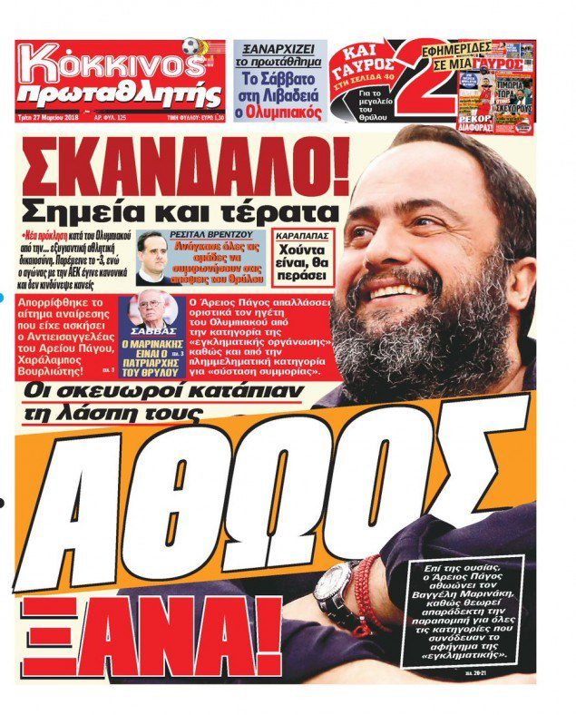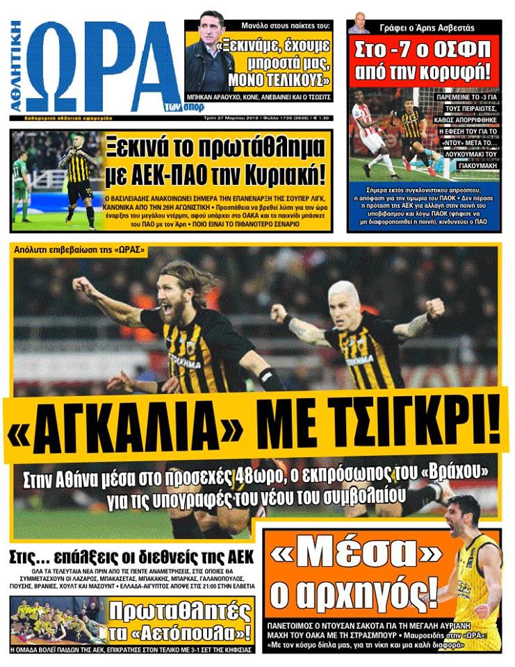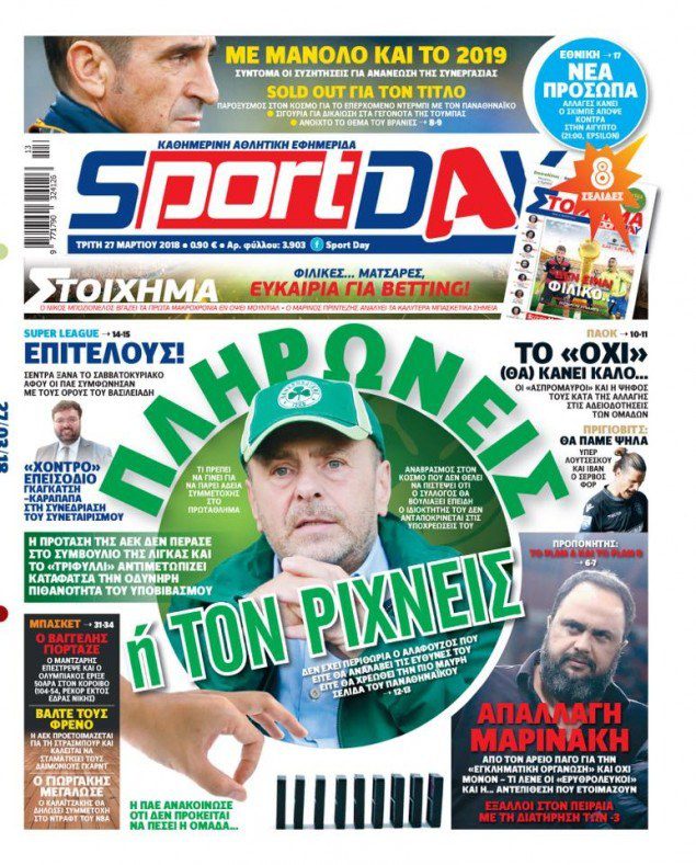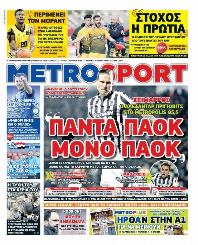 Ο αθλητικός τύπος σήμερα Τρίτη 27/03