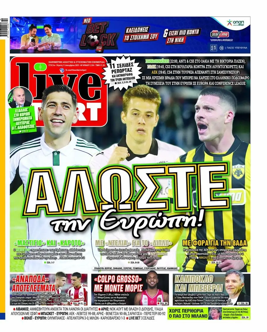 Πρωτοσέλιδα αθλητικών εφημερίδων για την Πέμπτη 11 Δεκεμβρίου 2025