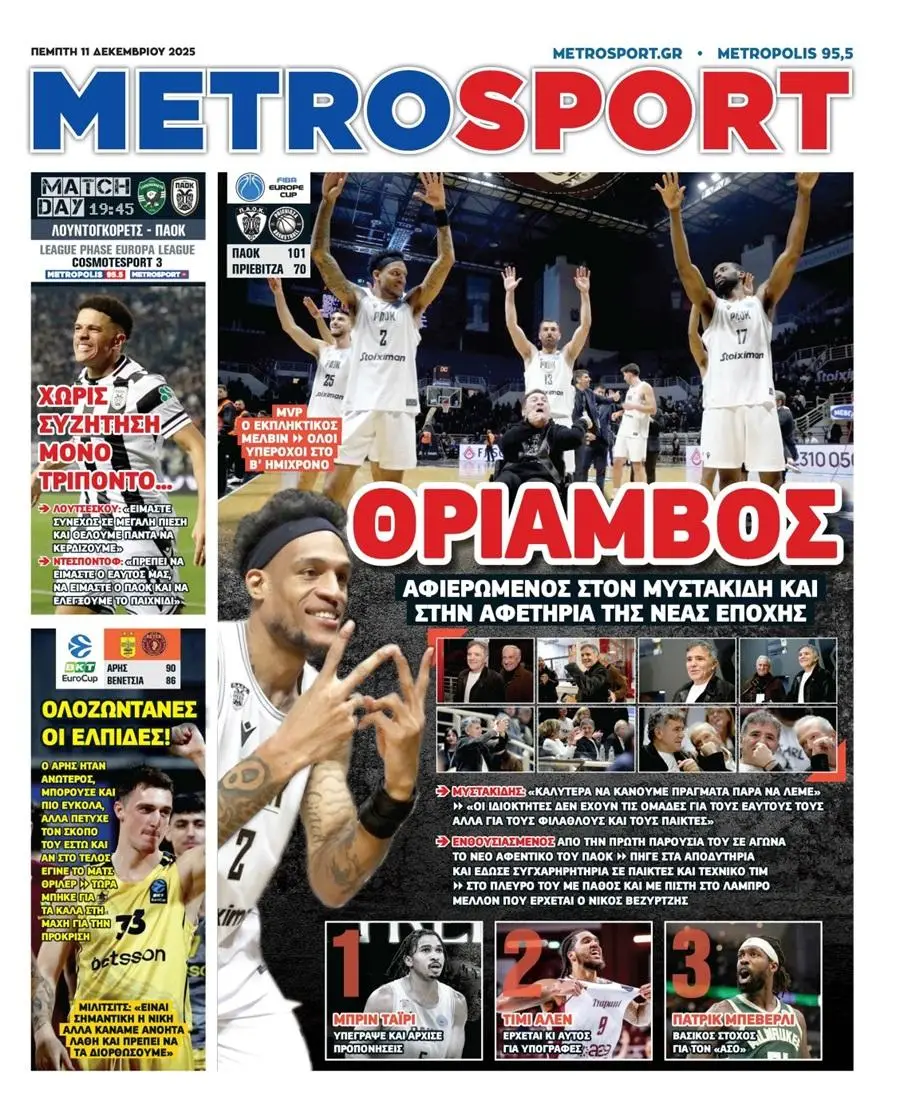 Πρωτοσέλιδα αθλητικών εφημερίδων για την Πέμπτη 11 Δεκεμβρίου 2025.