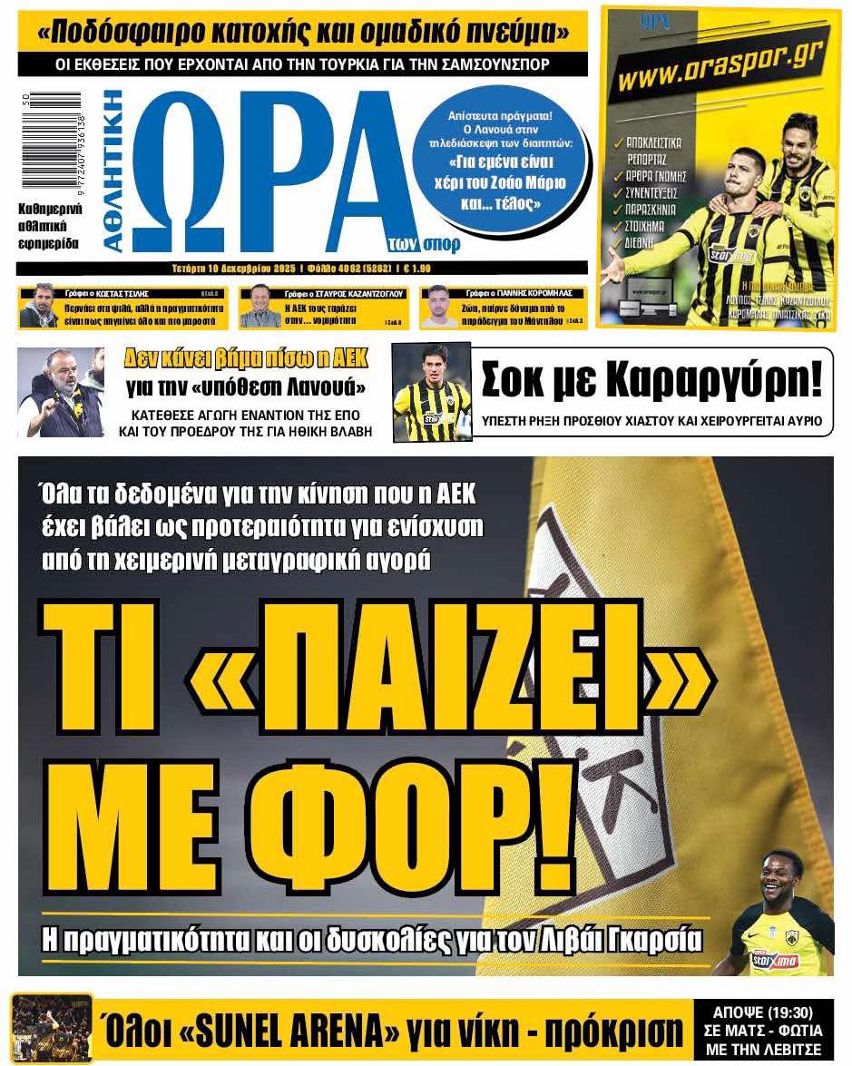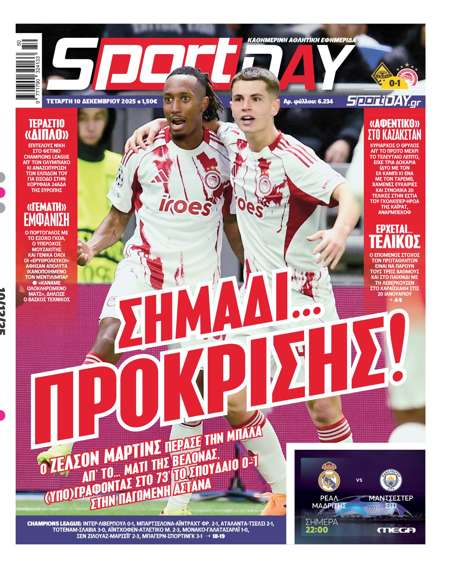 Πρωτοσέλιδα αθλητικών εφημερίδων για την Τετάρτη 10 Δεκεμβρίου 2025
