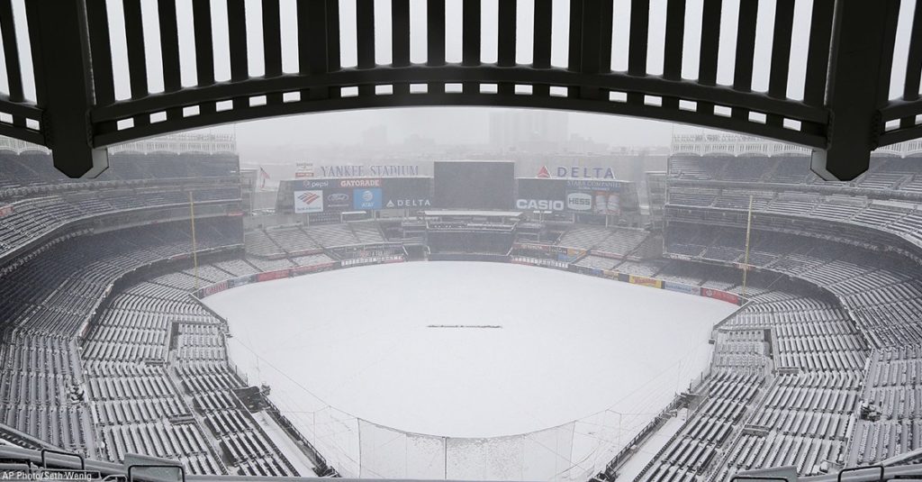 Η Άνοιξη έχει μπει για τα καλά. Ίσως η Νέα Υόρκη μπορεί να περιμένει λίγο ακόμη. Το αποψινό εναρκτήριο παιχνίδι των Γιάνκις, για τη νέα σεζόν της MLB, κόντρα στην Τάμπα Μπέι, αναβλήθηκε! Ο λόγος είναι προφανής και… ολόλευκος. Βλέπετε, η Νέα Υόρκη εξακολουθεί να ταλαιπωρείται από το κύμα βαρυχειμωνιάς, το οποίο άφησε ένα λευκό...