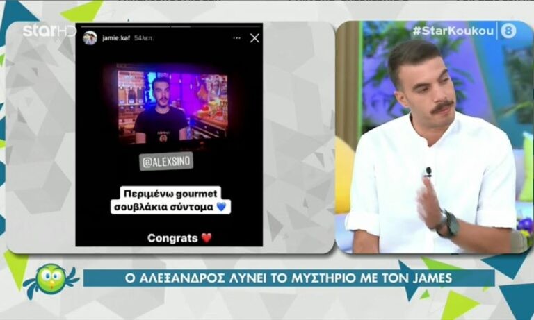 Ο Τζέιμς Καφετζής αποχώρησε οικειοθελώς από το Survivor και δεν έχασε την ευκαιρία να παρακολουθήσει τον φίλο του Αλέξανδρο Συνοδινό, ο οποίος έφτασε μέχρι την τετράδα του MasterChef 5. Ο Τζέιμς αντί να δει Survivor, αποφάσισε χθες να δει MasterChef και μάλιστα σε ένα story του αποκάλυψε τη φιλία του με την Αλέξανδρο Συνοδινό. «Περιμένω…