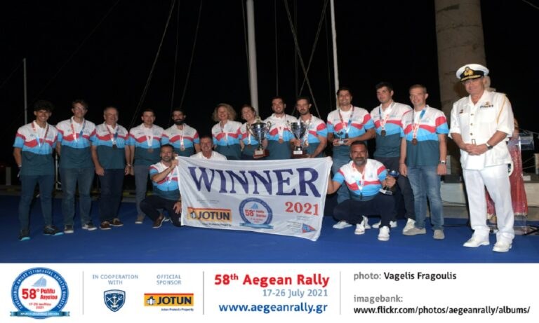Με την τελετή απονομής των επάθλων στον πανέμορφο κήπο της Ναυτικής Διοίκησης Αιγαίου ολοκληρώθηκε το «58ο Ράλλυ Αιγαίου» που διοργάνωσε ο Πανελλήνιος Όμιλος Ιστιοπλοΐας Ανοικτής Θαλάσσης.